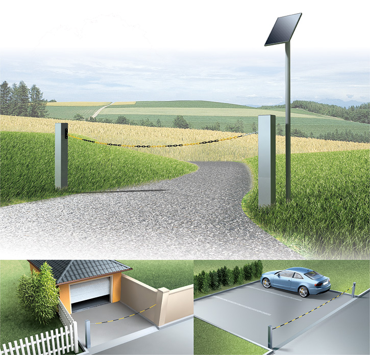 Unbefugtes Parken, egal ob im privaten oder öffentlichen Bereich, gehört mit dem LIFT X2 der Vergangenheit an. Die kompakte und formschöne Aluminiumsäule, in der alle notwendigen Komponenten, wie Steuerung und Motor, bereits integriert sind, kann fast überall zum Einsatz kommen. Dank der einfachen Handhabung mit Impulsgeber kann ein rasches und müheloses Senken und Heben der Kette erfolgen. Damit ist dem Benutzer ein stets freier Abstellplatz garantiert.